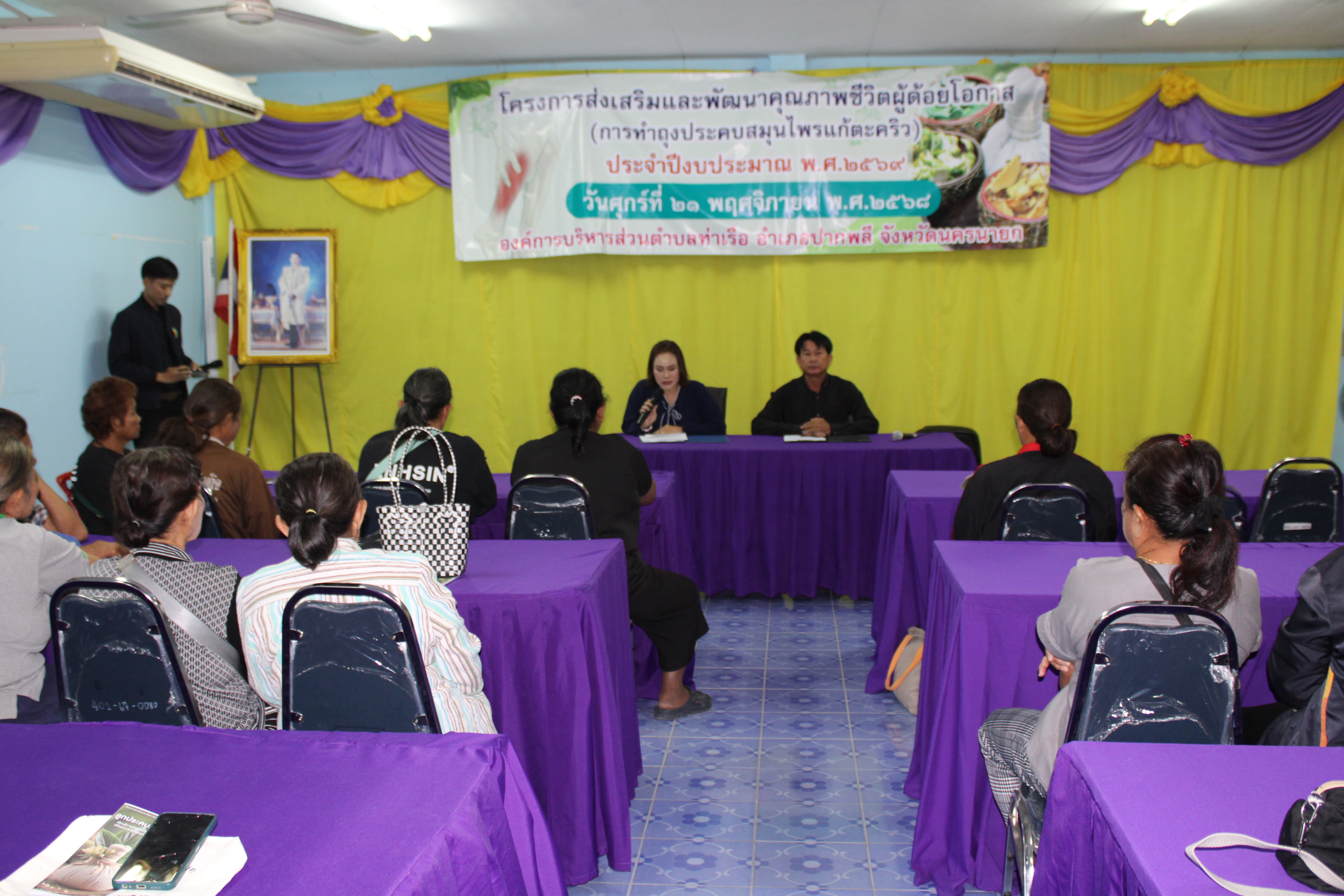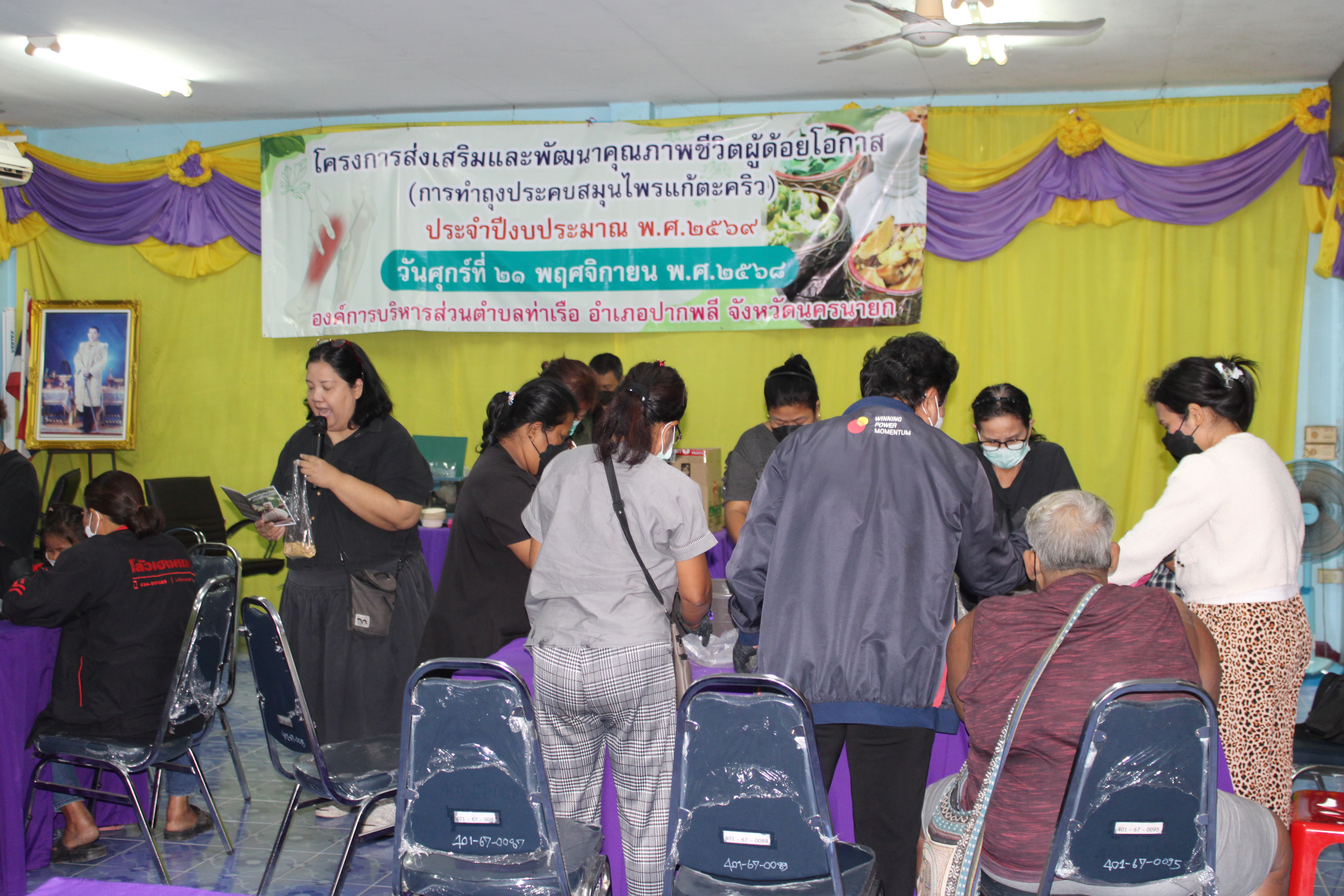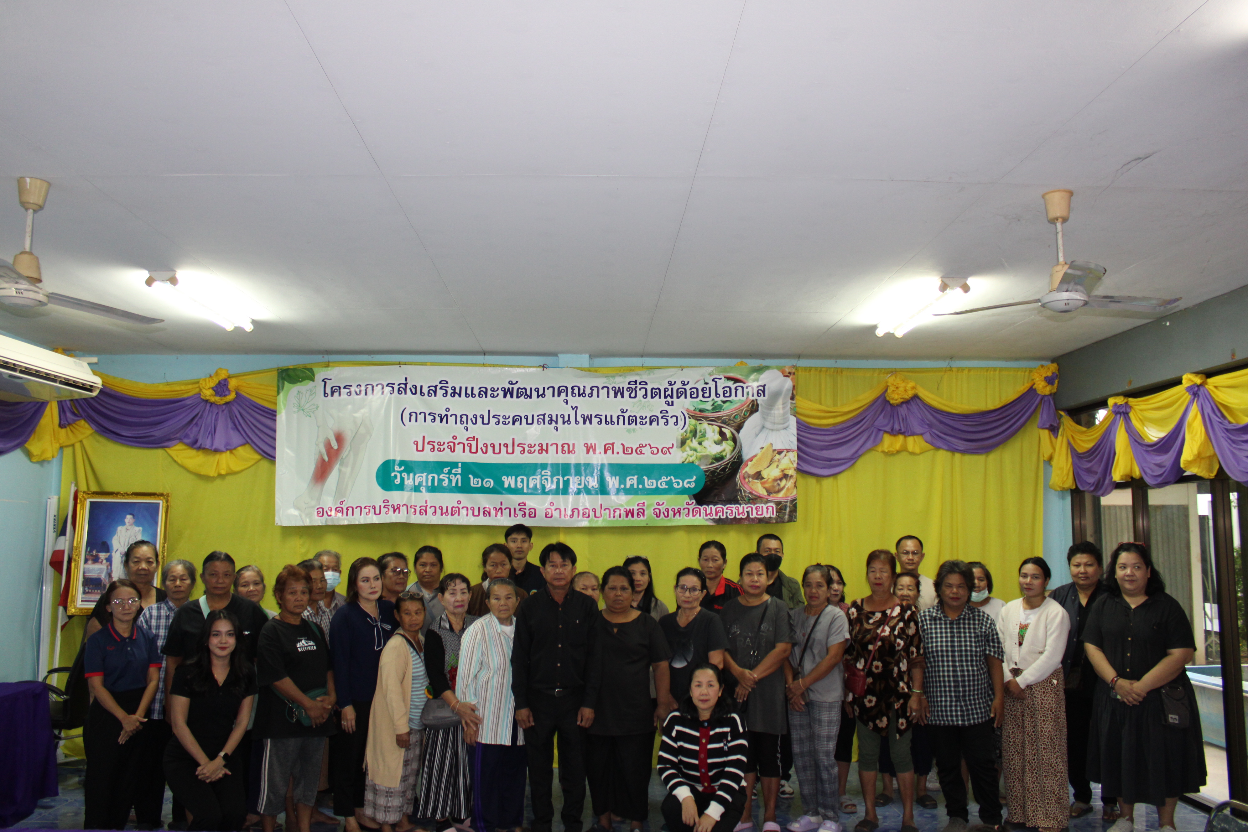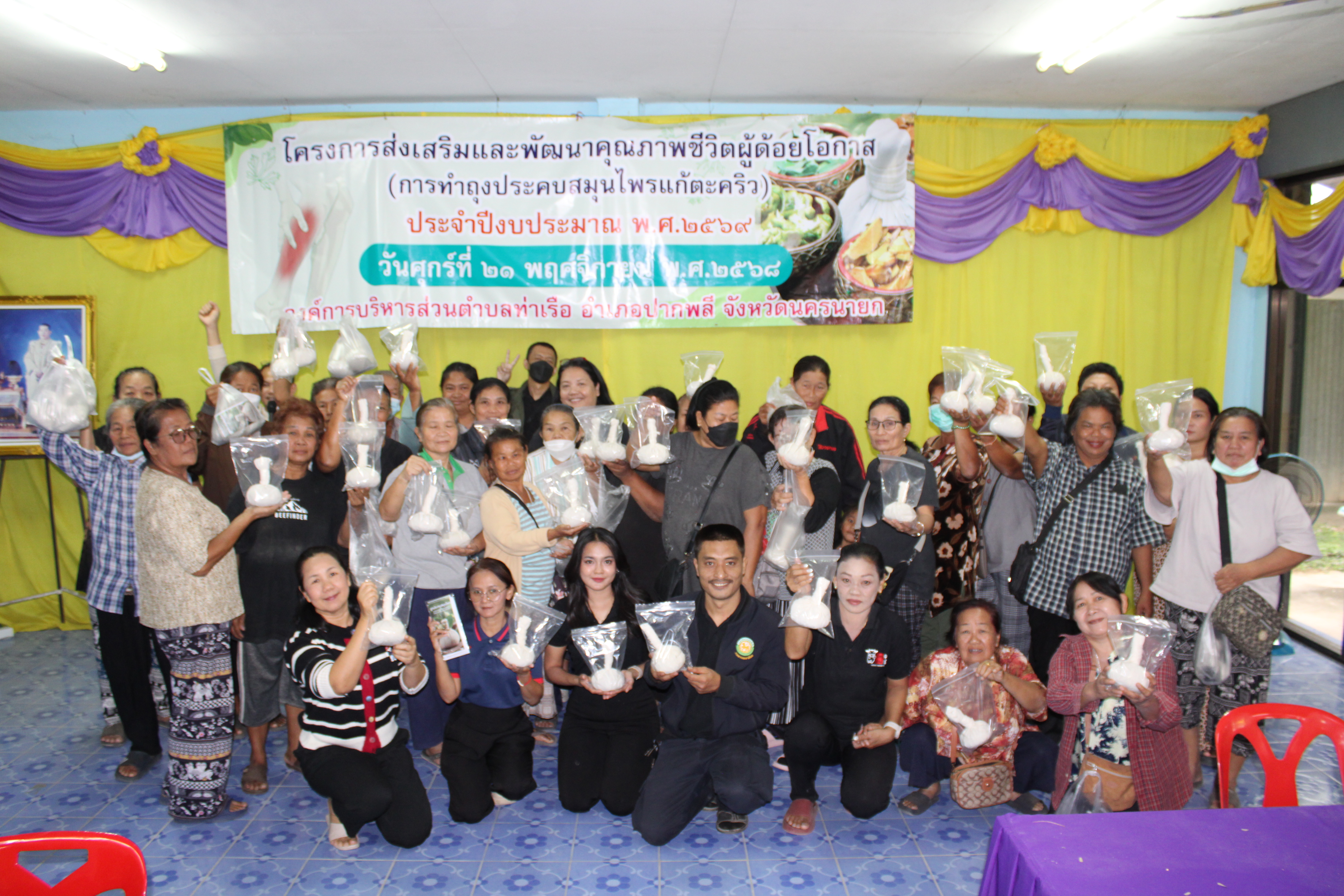 วันศุกร์ที่ 21 พฤศจิกายน 2568 องค์การบริหารส่วนตำบลท่าเรือได้จัดโครงการส่งเสริมและพัฒนาคุณภาพชีวิตผู้ด้วยโอกาส (การทำถุงประคบสมุนไพรแก้ตะคริว) ประจำปีงบประมาณ พ.ศ.2569 ณ องค์การบริหารส่วนตำบลท่าเรือ อำเภอปากพลี จังหวัดนครนายก