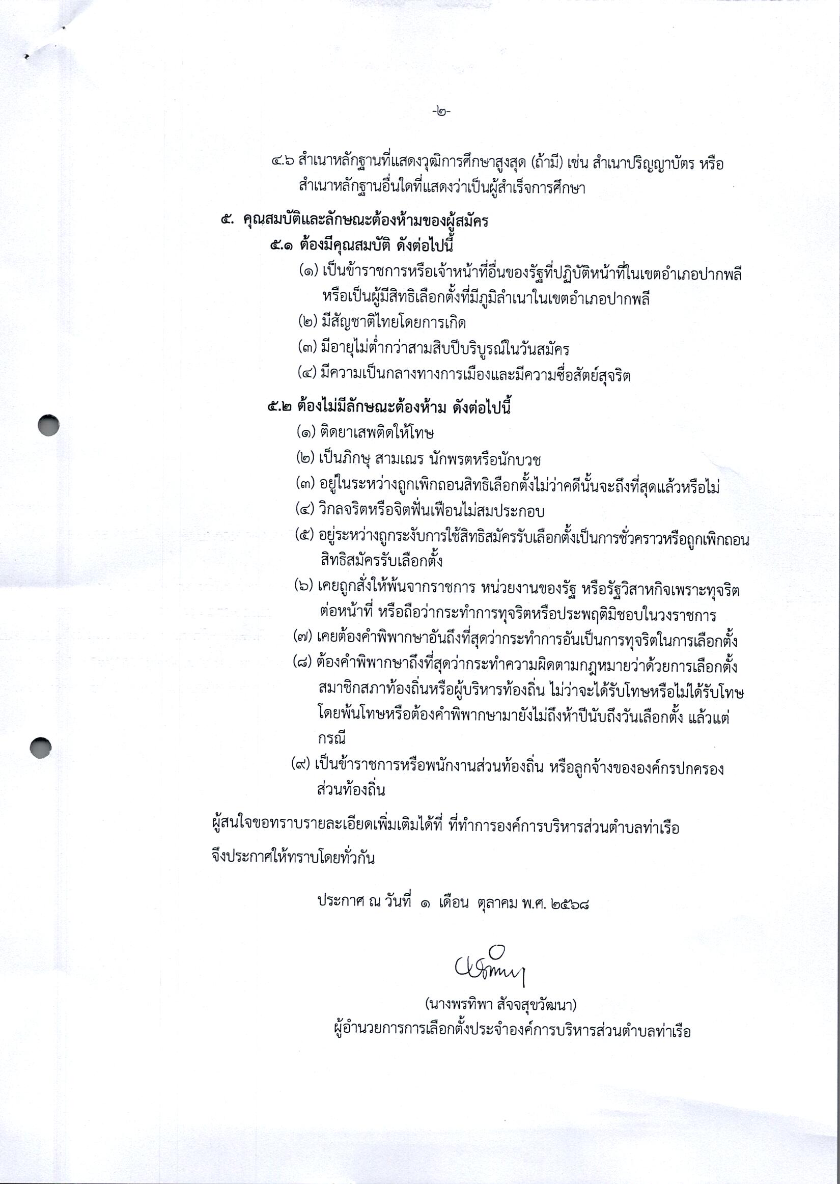 ประกาศผู้อำนวยการการเลือกตั้งประจำองค์การบริหารส่วนตำบลท่าเรือ เรื่อง การรับสมัครบุคคลเข้ารับการสรรหาเป็นคณะกรรมการการเลือกตั้งประจำองค์การบริหารส่วนตำบลท่าเรือ